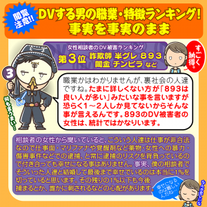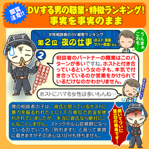 それでは僕の女性相談者のDV被害ランキング、相手の職業・特徴の第1位の発表です。