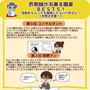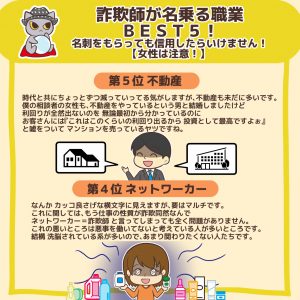fa-arrow-circle-right図解でわかる!詐欺師が名乗る職業BEST5!